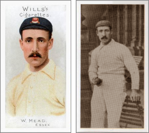 Walter Mead (1868–1954) was the principal bowler for Essex during their first two decades as a first-class county. As a member of the Lord’s ground staff, he was also after J.T. Hearne the most important bowler for MCC and Ground, who in those days played quite a number of first-class matches. A right arm bowler of slow to medium pace, Walter Mead always maintained an excellent length and could spin back to deadly effect whenever wickets were affected by rain.
